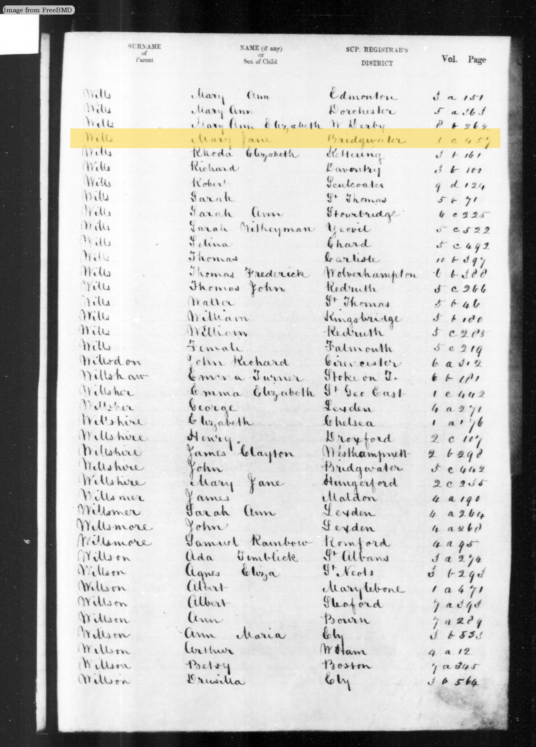 | Name | WILLS Mary Jane | |
