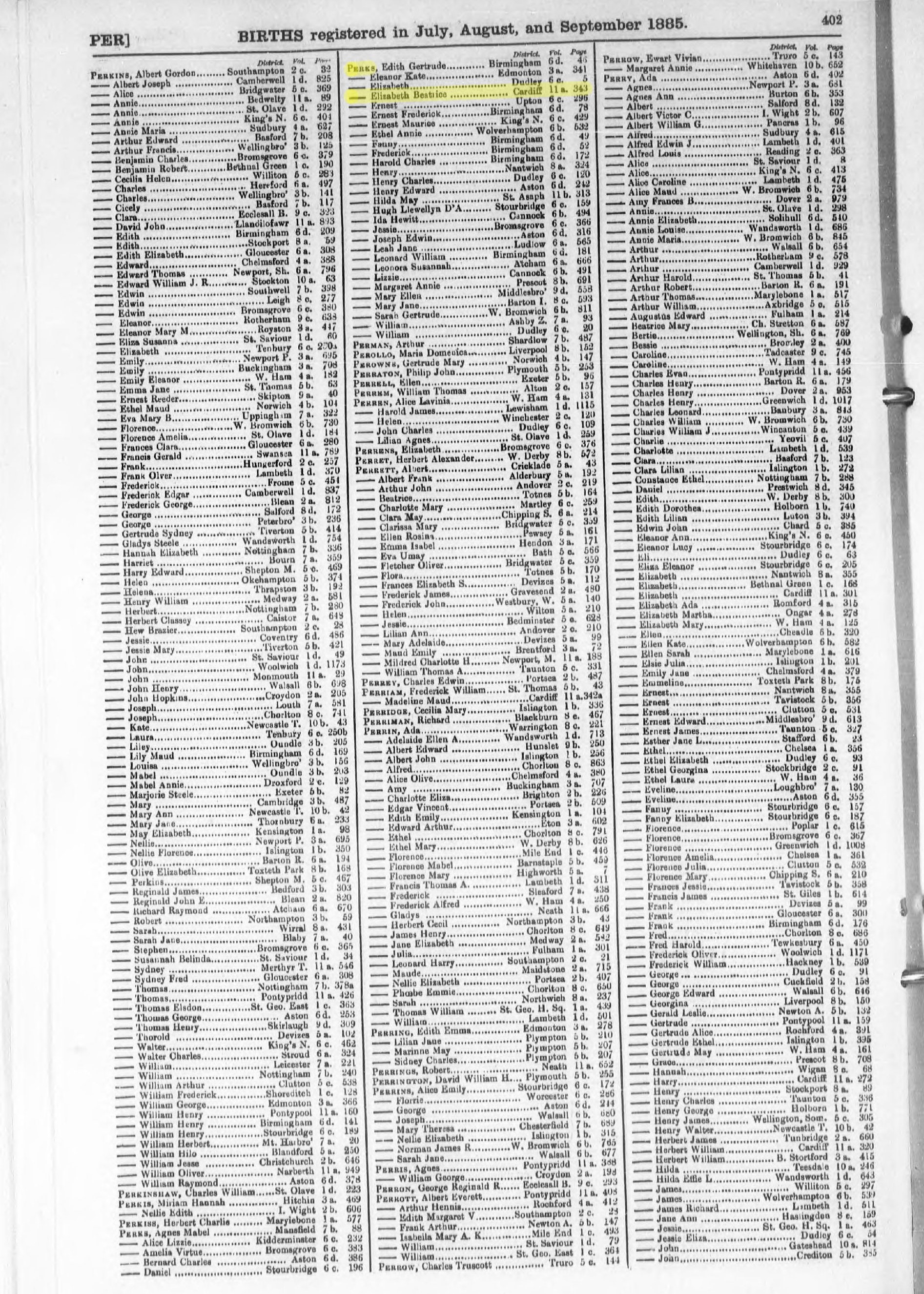 | Name | PERKS Elizabeth Beatrice | |