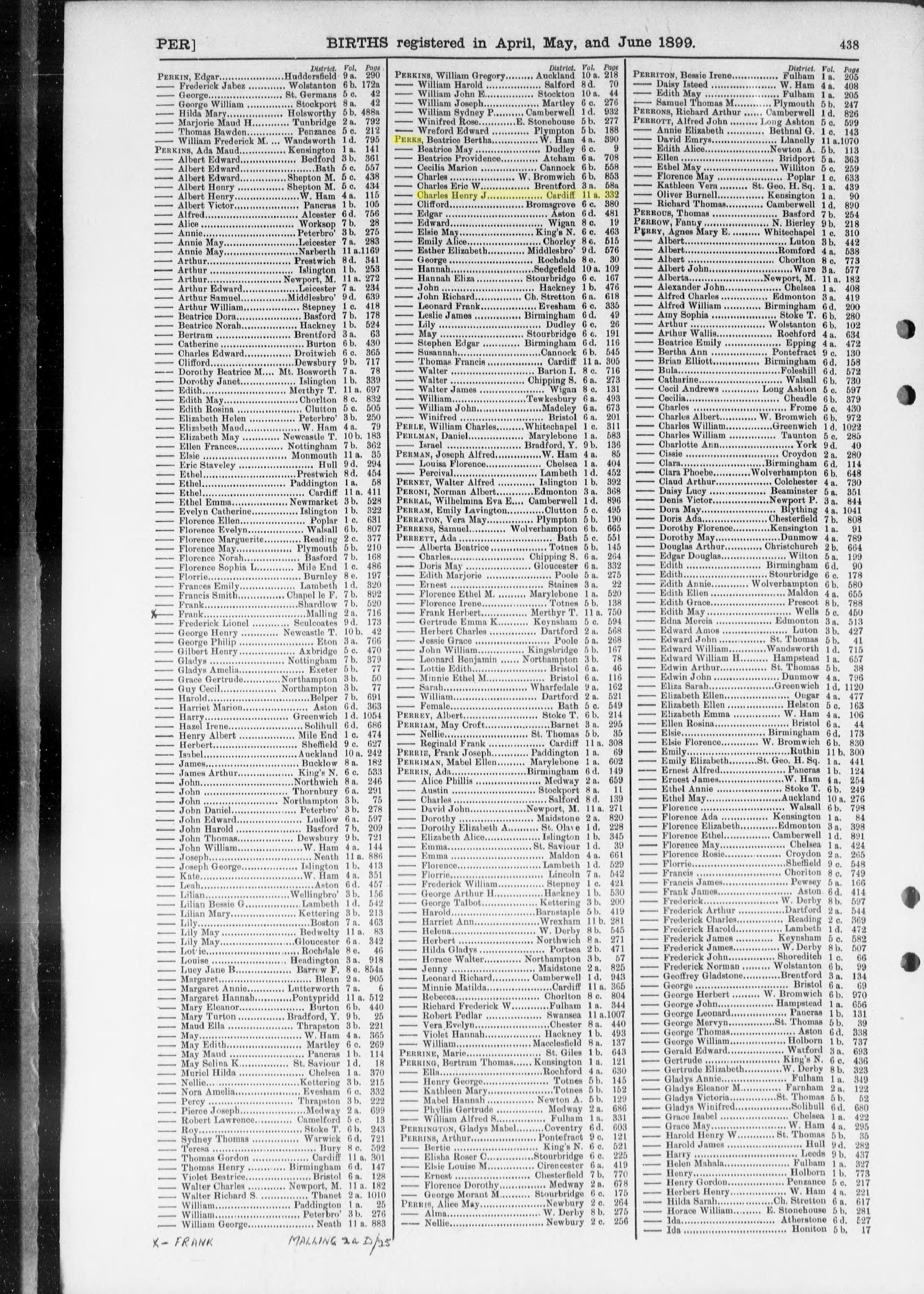 PERKS of CARDIFF Genealogy