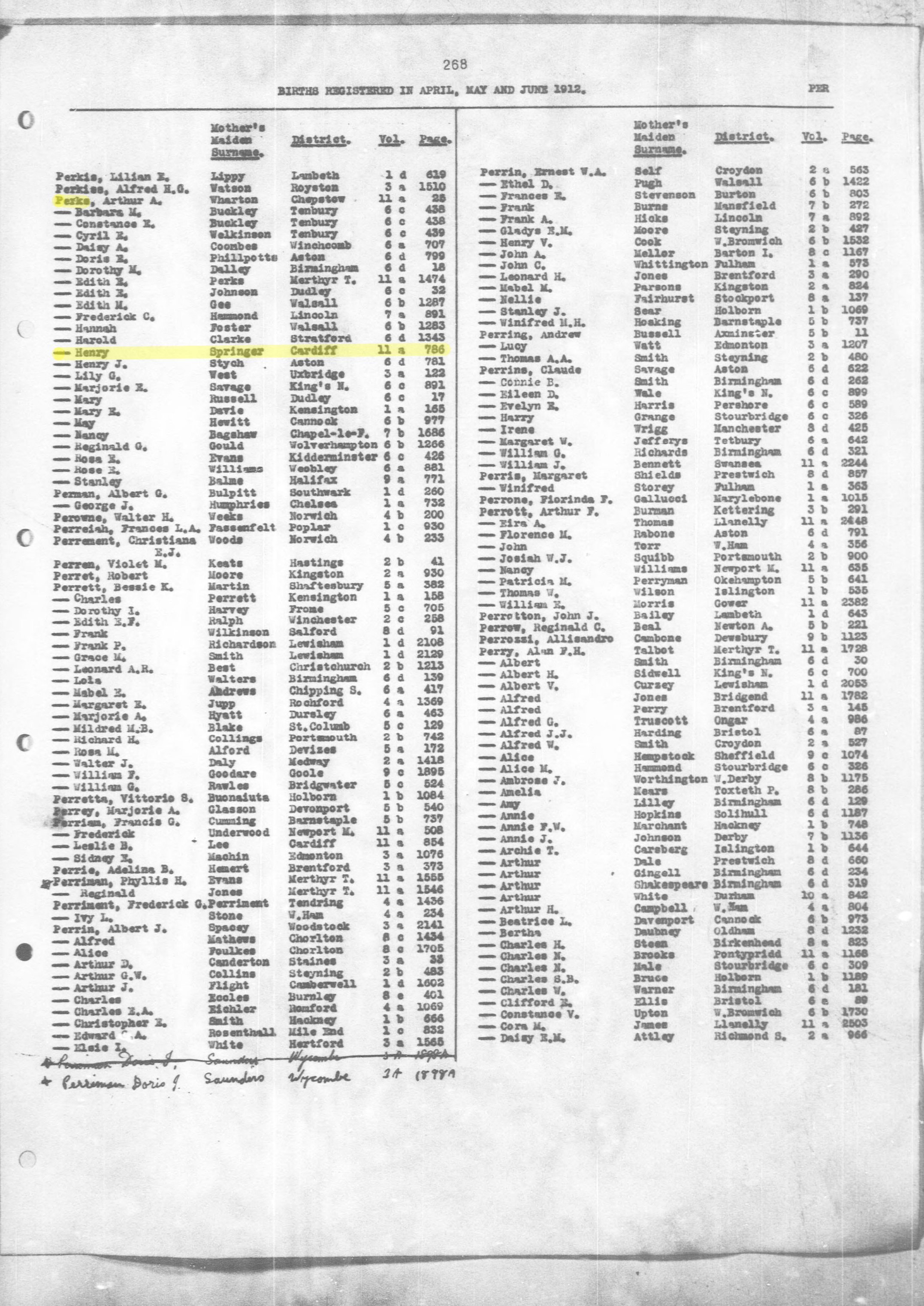 | Name | PERKS Henry | |
