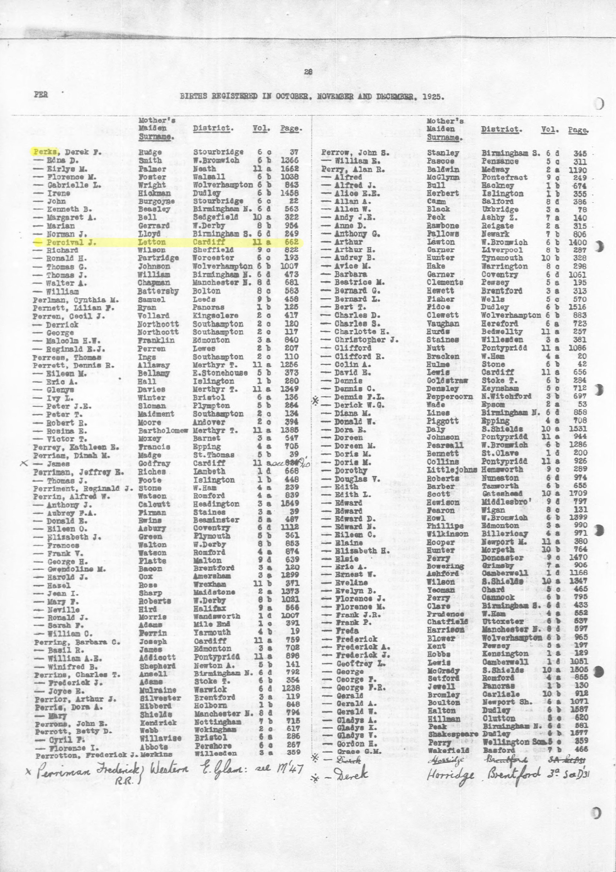 | Father | PERKS Charles Henry James, b. 17 Feb 1899, CARDIFF, Glamorgan, Wales | |