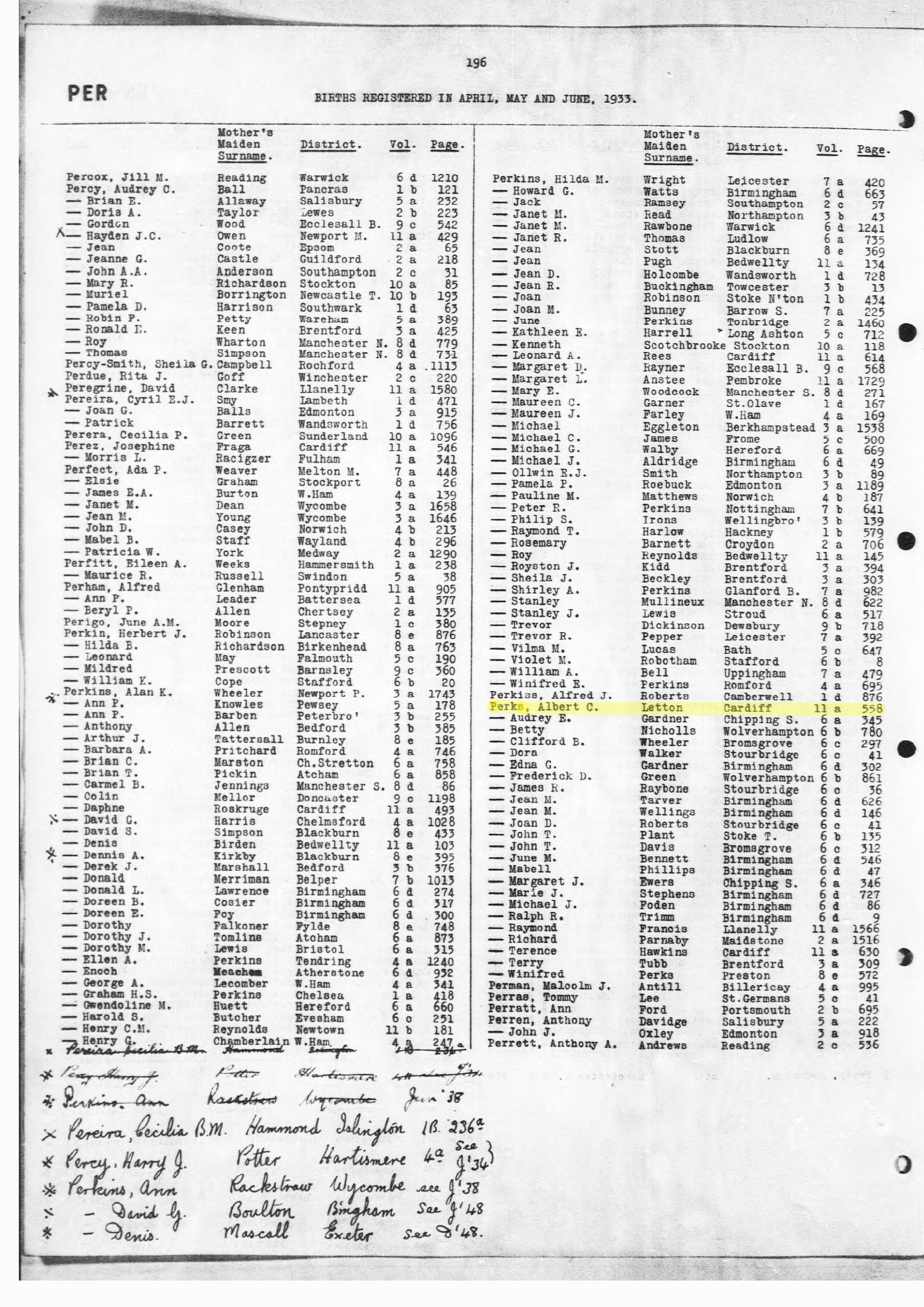 | Name | PERKS Albert Charles | |