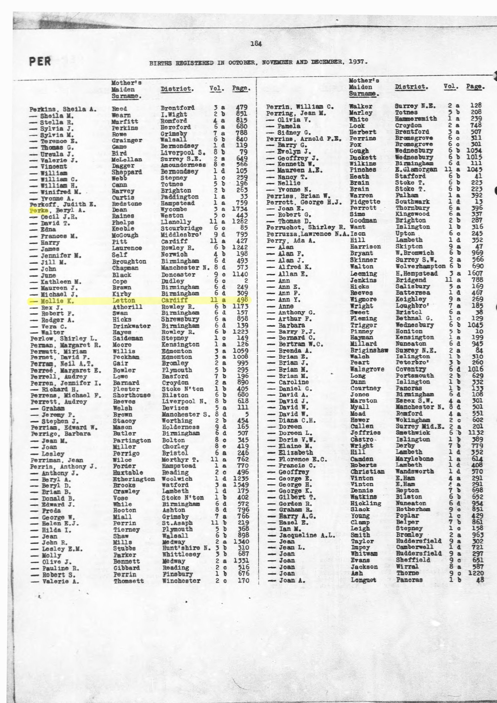 | Name | PERKS Mollie Kathleen | |